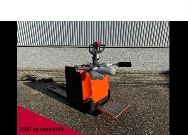 Deze BT elektrische pallettruck uit 2014 heeft een capaciteit van 2500 kg. De truck is voorzien 1150 mm vorken met 550 mm breedte over de vorken en enkele vorkrollen. Verder is de machine voorzien van een opklapbaar meerijdplateau en beschermbeugels en stuurbekrachtiging.