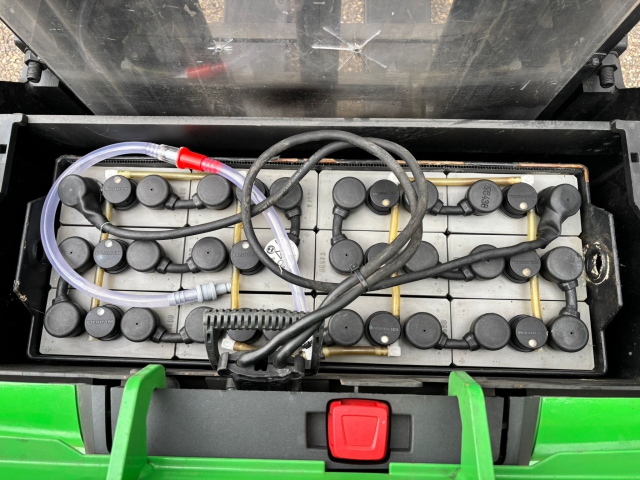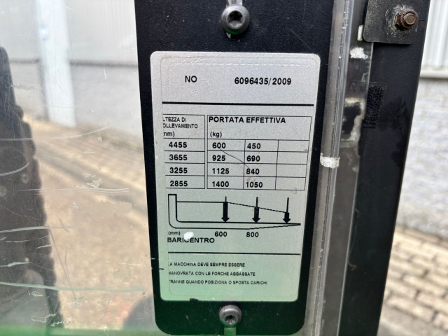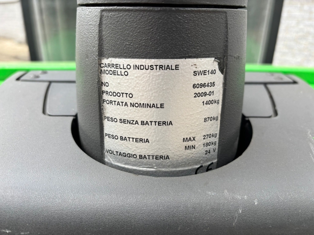 Deze BT stapelaar uit 2009 heeft een capaciteit van 1400 kg. De truck is uitgevoerd met een driedelige hefmast met 4455 mm hefhoogte en 2080 mm doorrijhoogte. De truck heeft 1150 mm vorken en enkele vorkrollen.