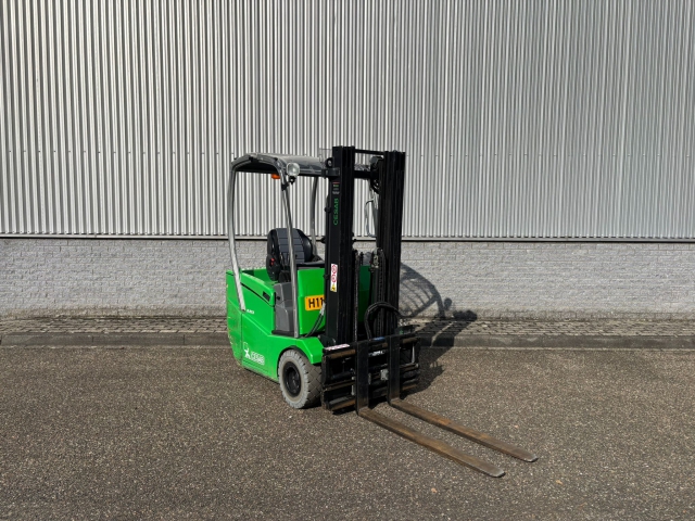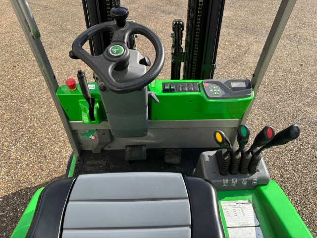 Deze Cesab elektrische vorkheftruck uit 2017 heeft een capaciteit van 1250 kg. De truck is uitgevoerd met een driedelige hefmast met vrije heffing, 4315 mm hefhoogte en met 1950 mm doorrijhoogte. Daarnaast is de truck uitgerust met een vorkversteller en side shift.