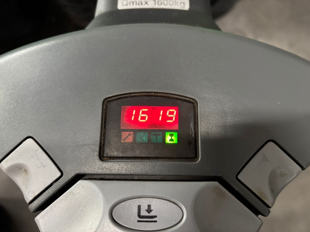 Deze elektrische pallettruck uit 2014 heeft een capaciteit van 1600 kg. De truck is uitgevoerd met 1150 mm vorken en dubbele vorkrollen.