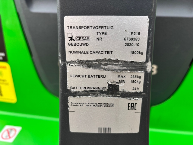 Deze Cesab elektrische pallettruck uit 2020-10 heeft een capaciteit van 1800 kg. De truck heeft 1150 mm vorken en enkele vorkrollen.