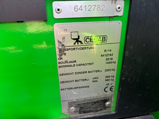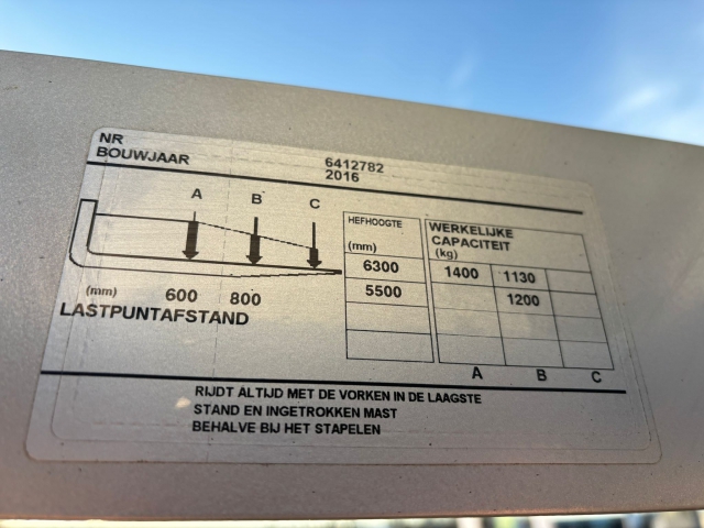 Deze Cesab reachtruck uit 2016 heeft een capaciteit van 1400 kg. De truck is uitgevoerd met een driedelige hefmast met 6300 mm hefhoogte en 3000 mm doorrijhoogte.
