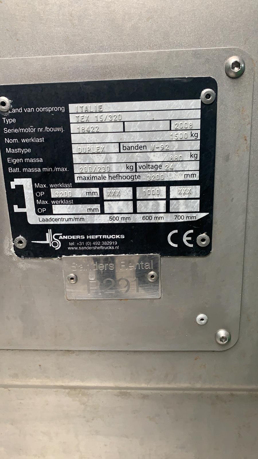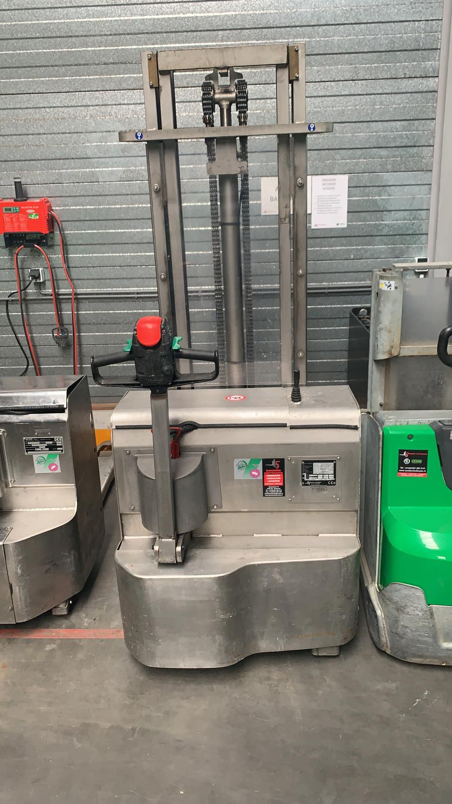 Deze Icem 1500 kg elektrische stapelaar uit 2008, heeft een tweedelige hefmast met 3200 mm hefhoogte. De doorrijhoogte van de truck is 2100 mm. Verder is de truck uitgevoerd met 1150 mm vorken en dubbele vorkrollen. Het chassis van deze truck is vervaardigd uit volledig roestvrijstaal. Daardoor is de truck bestand tegen de zwaarste omstandigheden en perfect voor gebruik in de voedingsverwerkende industrie.