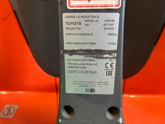 Deze elektrische pallettruck uit 2018 heeft een capaciteit van 1800 kg. De truck is uitgevoerd met 1000 mm vorken en enkele vorkrollen.