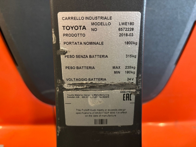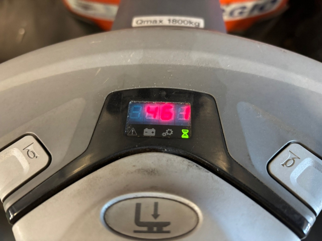 Deze elektrische pallettruck uit 2018 heeft een capaciteit van 1800 kg. De truck is uitgevoerd met 1000 mm vorken en enkele vorkrollen.