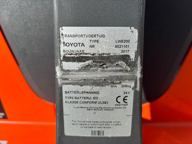 Deze Toyota elektrische pallettruck uit 2017 heeft een capaciteit van 2000 kg. De truck heeft 1150 mm vorken en enkele vorkrollen.