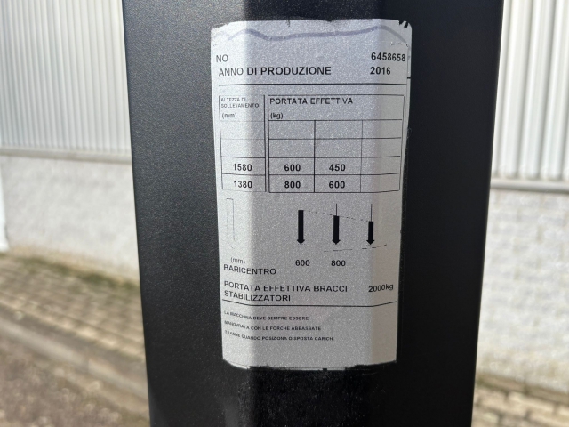 | Hefhoogte | 1580 mm |