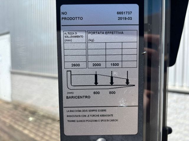 Deze Toyota stapelaar uit 2019 heeft een capaciteit van 2000 kg. De truck is uitgevoerd met een tweedelige hefmast en 2600 mm hefhoogte. De doorrijhoogte is 1970 mm.